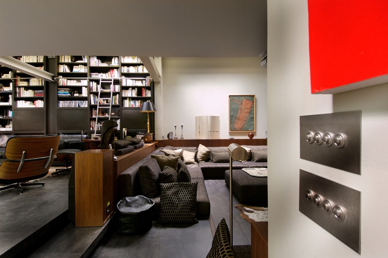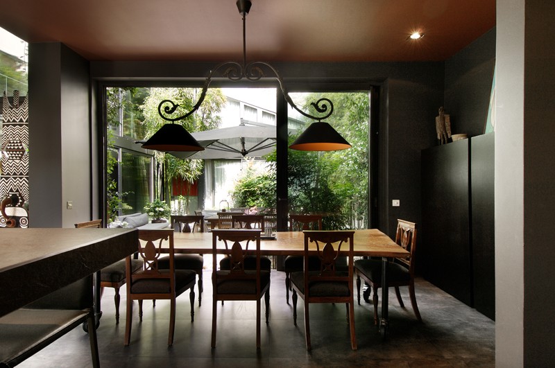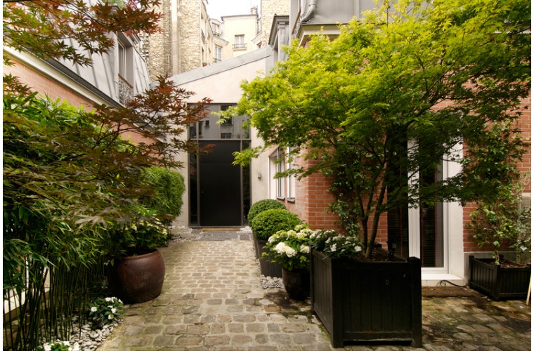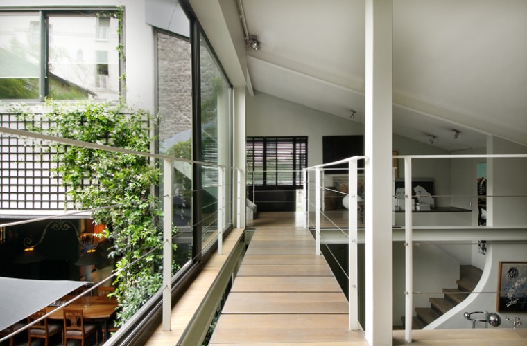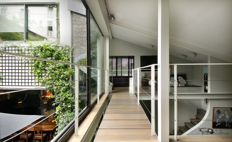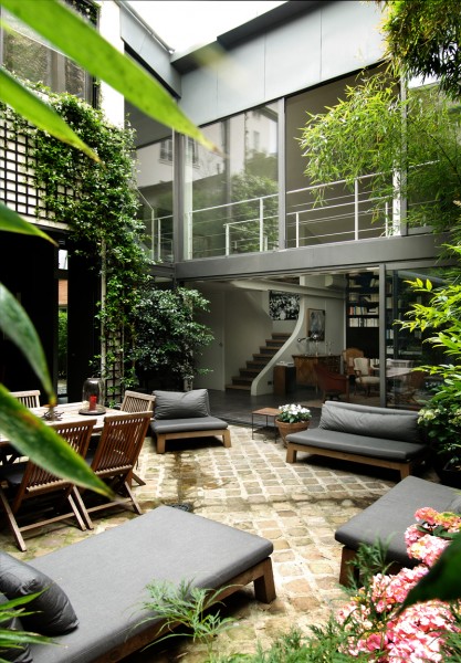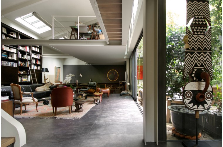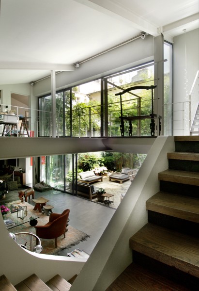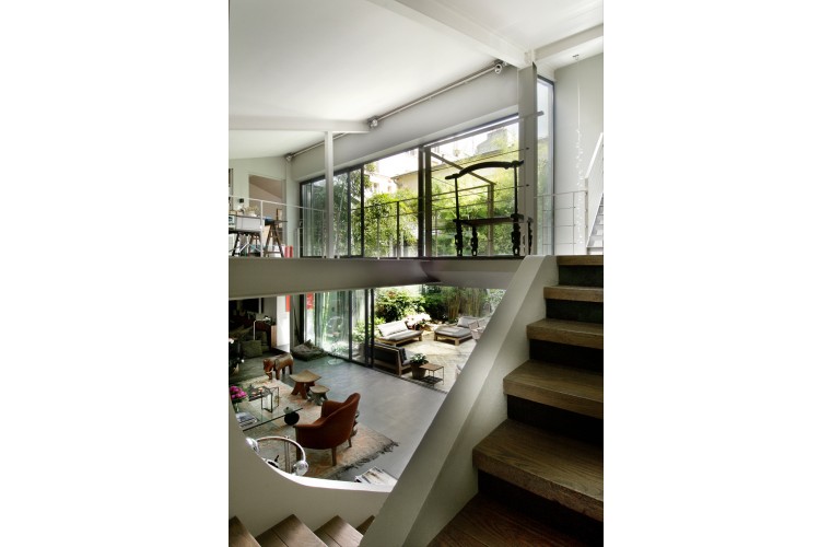 Ancien garage de mécanique, reconverti en loft contemporain en 2005. La création d’un patio a permis à l’appartement de s’articuler autour d’un espace vert qui devient le cœur de verdure et de lumière. Surface : 400 m2.