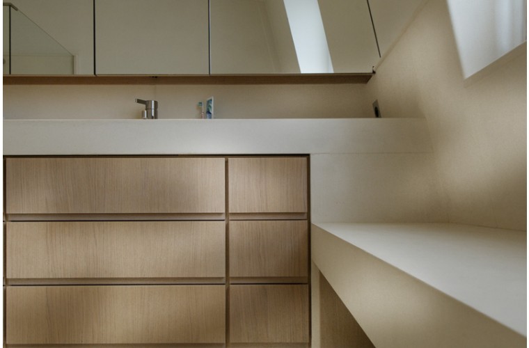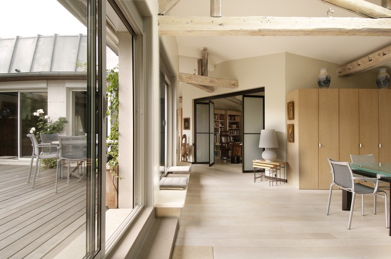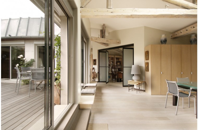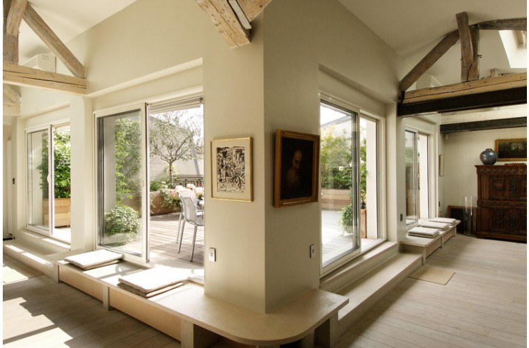 Réalisé dans l'étage des chambres de service, ce loft a été conçu autour de la terrasse.